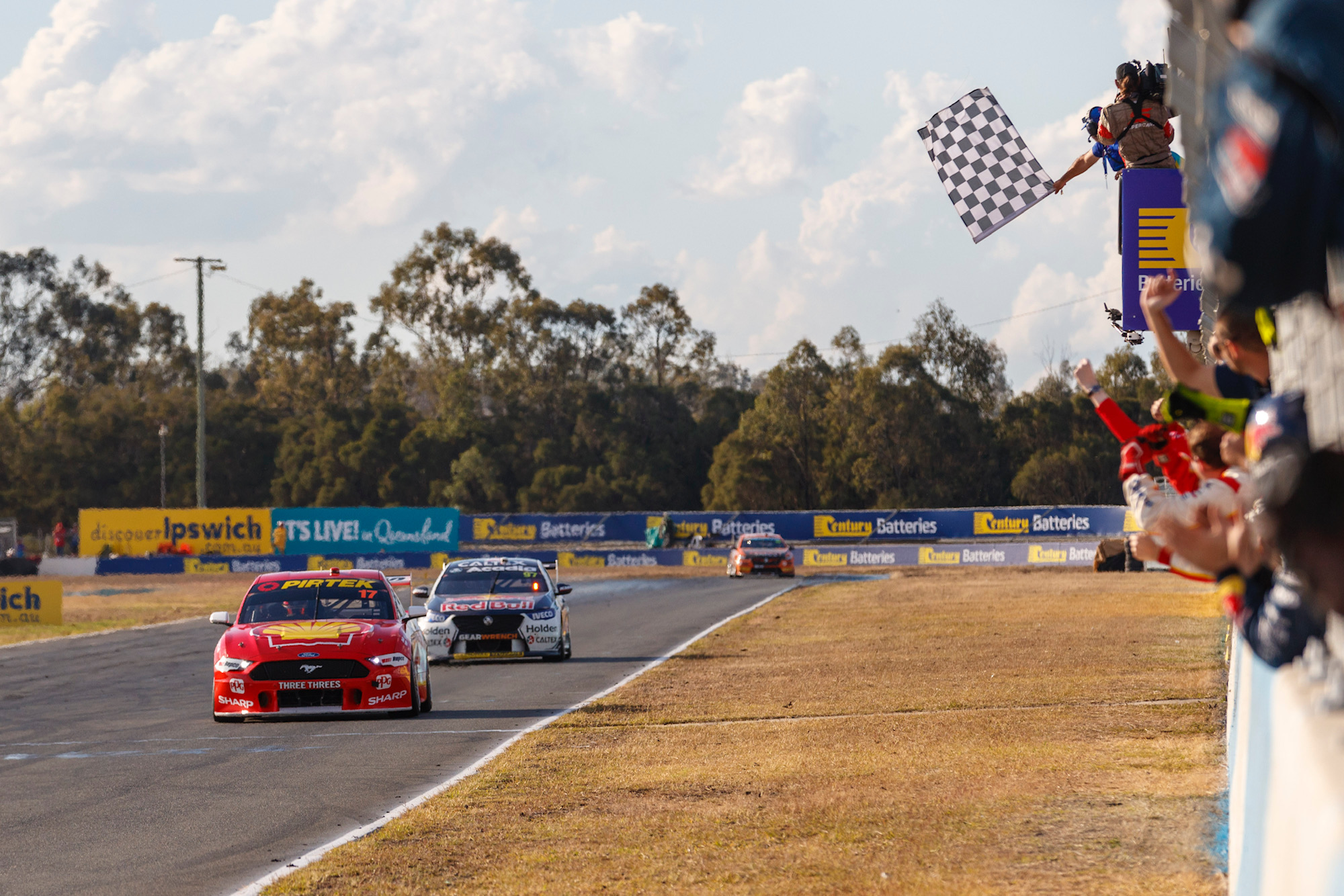 Scott McLaughlin’s remarkable race win at Queensland Raceway has seen Ford seal the 2019 Manufacturers’ title, as the Kiwi edges further ahead in his own bid for back-to-back titles.