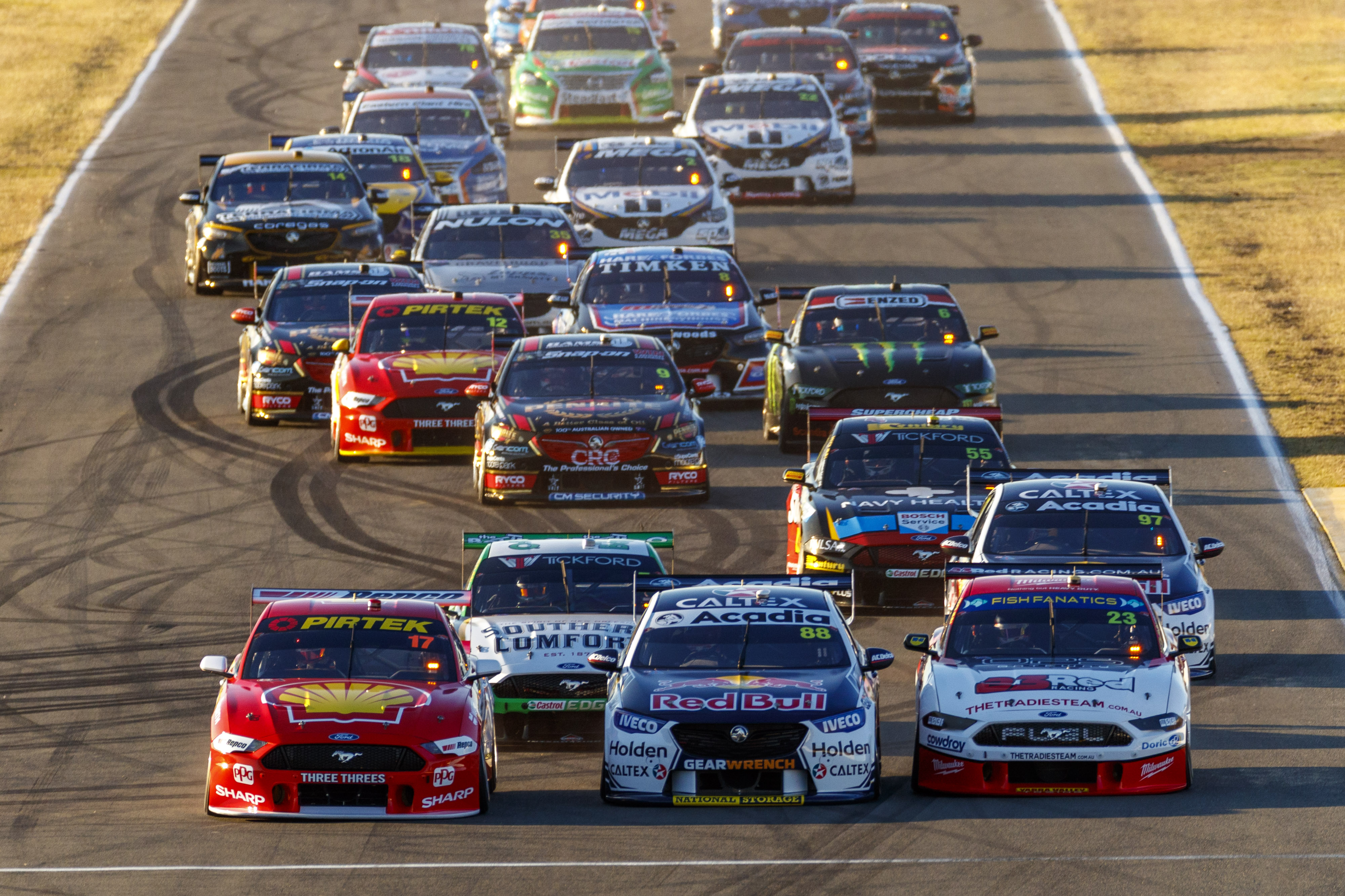 A frantic start to the race saw Whincup steal the lead from McLaughlin following the first corner, the Kiwi dropping to third on the next turn after losing a tight battle with Davison.