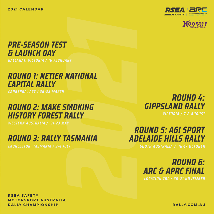 The 2021 RSEA Safety Motorsport Australia Rally Championship Calendar