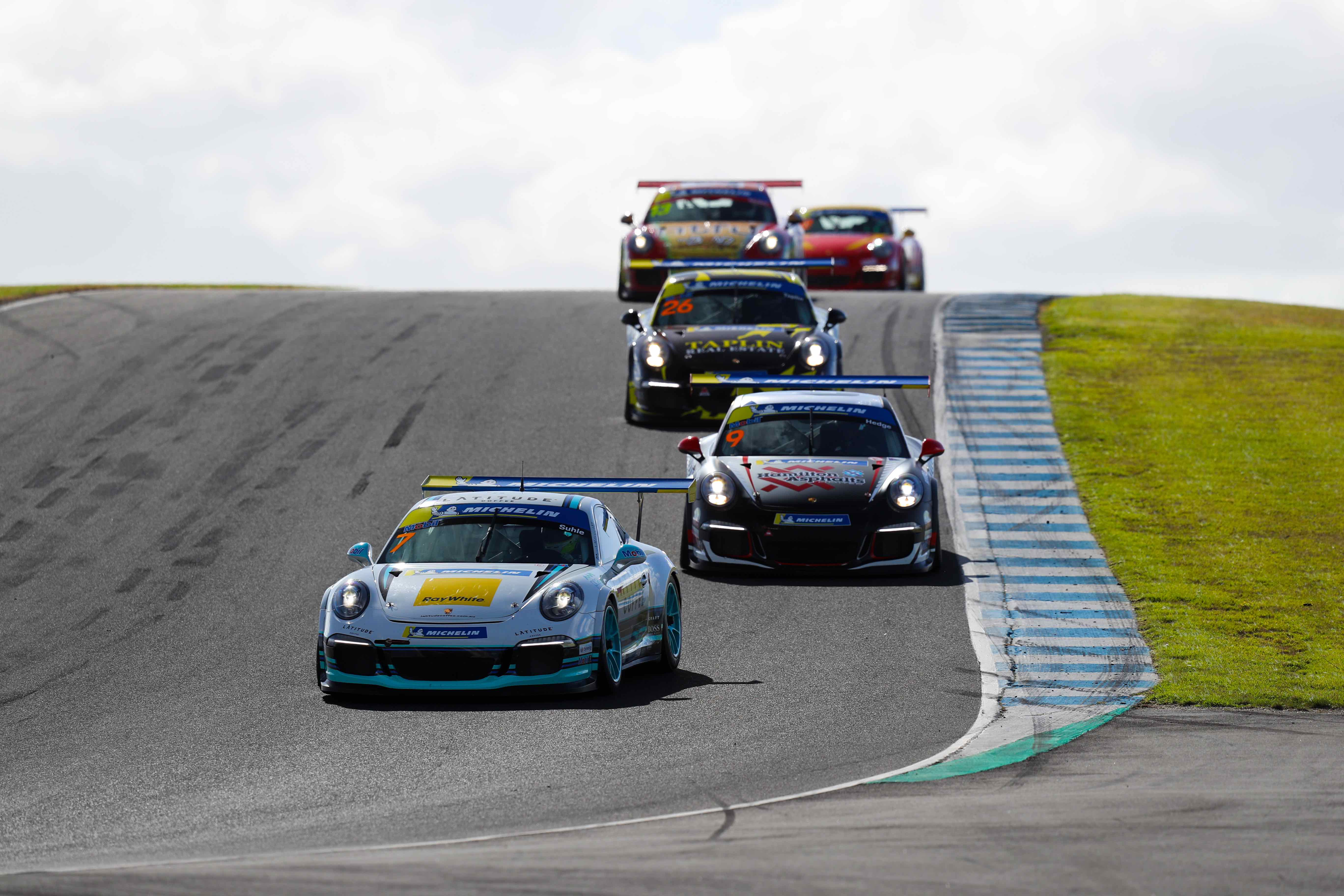It’s an extremely tight battle at the top of the class as very little separates series veteran Sam Shahin, who became just the third driver to notch up 100 starts in the category last month and Porsche Centre Melbourne driver Matt Belford, who has being enjoying a steady rise up the ranks since joining in 2019 and nabbed his first career round win in the same round.