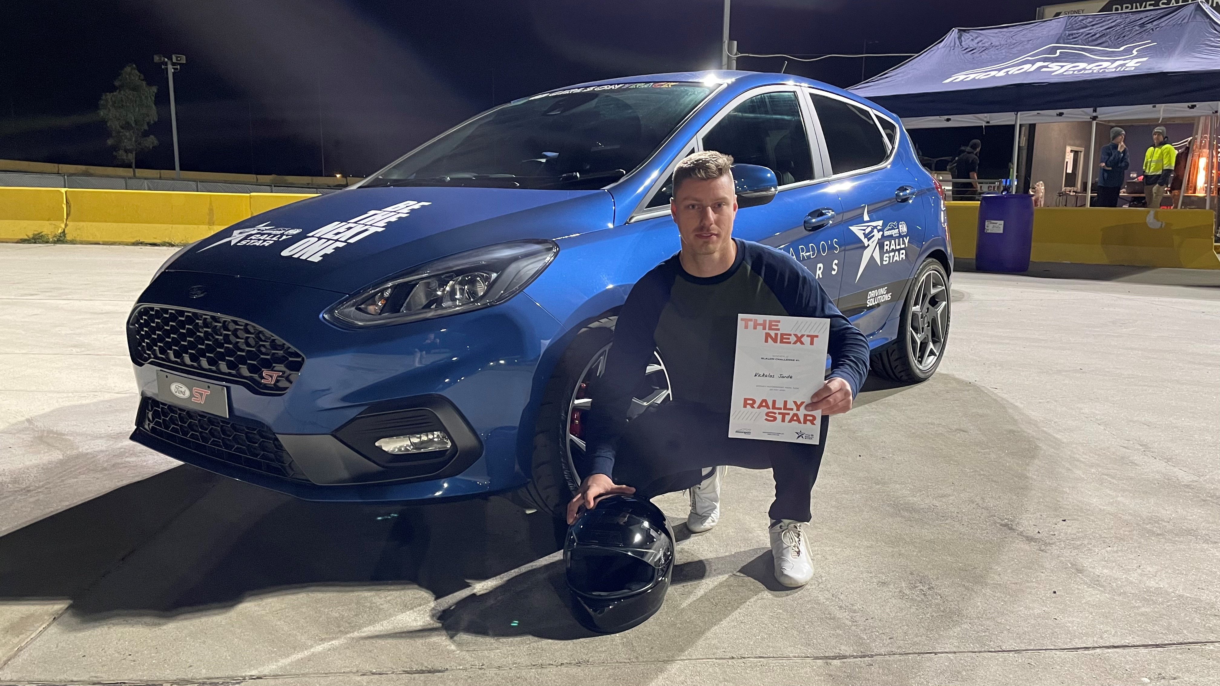In a thrilling Slalom event, Jande beat 10 other rally hopefuls in an elimination style format where each driver completed multiple runs of a course layout.