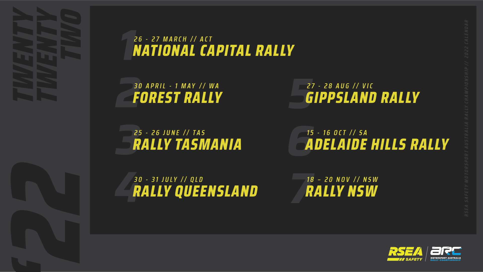 2022 RSEA Safety Motorsport Australia Rally Championship Calendar